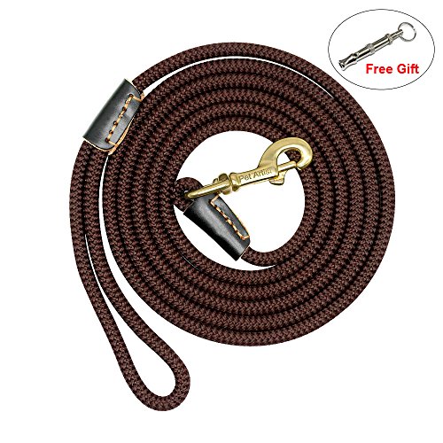Pet Artist is prefessional dog supplies brand with more than 8 years experience in this field, especially good at dog training products, we aim at your great buying and using experience Various Sizes - 3/8inch diameter, length:10ft(3m),16ft(5m),33ft(10m),66ft(20m), 4 sizes fit for different training purposes and perfect dog control; Light Weight - The leash is very lightweight. Less than 33g/m, the longest size lead weight is just approx 1.5Ibs. It`s easy to carry so you don`t have to carry a heavy tracking leash while training; Heavy Duty - The leash can bear 180Ibs pull, the copper hook/clasp perfect for holding less than 100Ibs dog, such as German shepherd, Labrador, Golden retriever and smaller dogs breeds,etc; Wearproof Anti-rust - The outer layer of the leash is made of special braided nylon which is very wearproof and anti-slip than common rope lead, also the copper clasp/hook is anti-rust, the joints of leash and clasp with genuine leather cover to anti-wear , which make the leash durable and for long time using even in bad training/tracking environment; Easy to Clean and Store - The whole leash is washable better be dried by wind, the clasp/hook is anti-rust, so the leashs is perfect for using on the beach, outdoor adventure, etc;