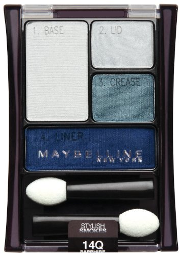 Studio : Maybelline, Consumer Products Division of L?Oreal USA S/D, Inc. Publisher : Maybelline, Consumer Products Division of L?Oreal USA S/D, Inc. Binding : Misc. Product Description Easy to use. lots to choose. Just sweep the brush x4. Four coordinating shades with step by step application guide makes shadow easier than ever. All day crease proof wear. Glides on effortlessly with superior smoothness. Velvet tip applicator blends without tugging or pulling. Safe for sensitive eyes and contact lens wearers, ophthalmologist tested. 0