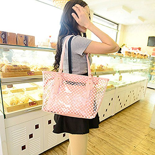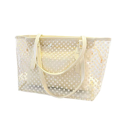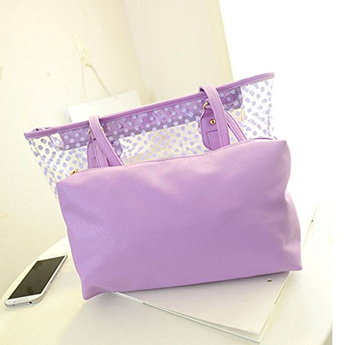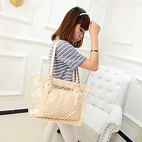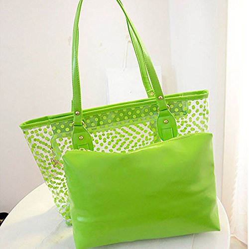 Product Description 100% Brand New and High Quality Transparent Clear Jelly Shoulder Bag with an inside bag£¬Transparent outer bag with zipped closure Inside bag with zipped closure Used for: Beach, casual outtings, work, school etc. Color: Green.Blue.Pink.Purple.Rose.White Material;Jelly/Plastic Size:Top Width:41cm/16.1;; Bottom Width:33cm/12.9' Height:17cm/6.69' Thick:13cm/5.11' Package include: 1 x Womens Shoulder Bag