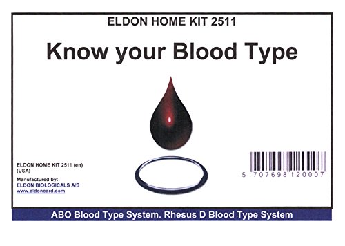 Easy, Self-testing Blood Type Kit - Everything you need to discover your blood type and rhesus factor in the comfort of your own home - pain free.This affordable kit comes complete with everything you need, including instructions, finger lancet and alcohol prep, plastic applicator sticks and testing card. Performing the test is easy. After first cleaning with the supplied alcohol prep pad, the finger is lanced with the sterile disposable lancet. The hand is then turned downward and a drop of blood is placed on top of each of the four sticks. The sticks are then applied to the card, and stirred for two minutes. The results are then read from the card. Total time to results is less than six minutes. Single use blood typing kit (for educational purposes only).Feature