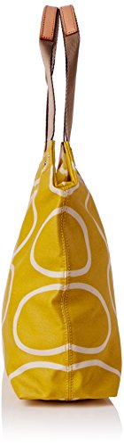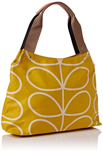 Matte laminated shoulder bag in the 'giant linear stem' print with leather trims and double sided webbing handles and contrast colored zip closure. Inside details include linear stem jacquard lining, small leather logo card holder pocket, zip pocket, elasticated key chain and mobile slip pocket. Silver colored hardware. Handles measure 44 cm from top edge of the bag.