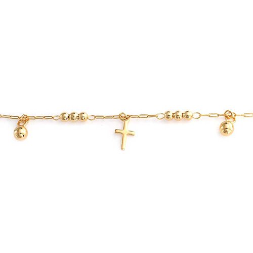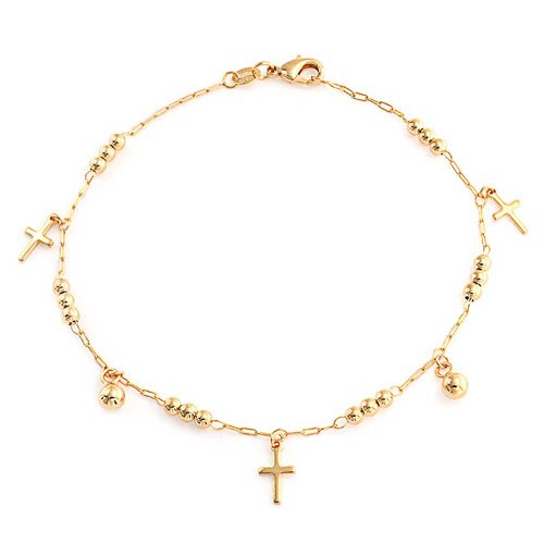 -. Title : Bling Jewelry Gold Filled Dangling 5mm Cross Beads Religious Anklet 10in