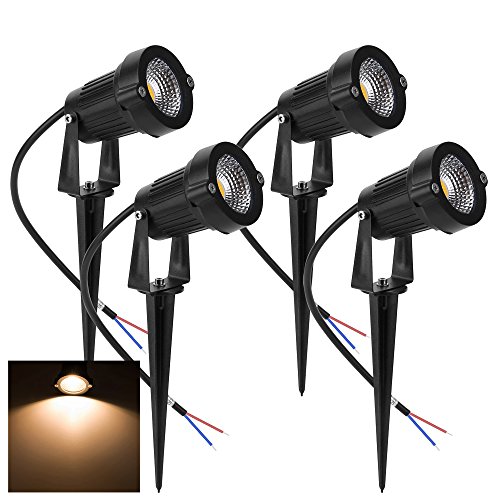 Familite Outdoor Waterproof Decorative Spotlight-6W COB LED Landscape Path Light AC/DC 12V with Spiked Stand, Pack of 4 (Warm White 2600-2800K)