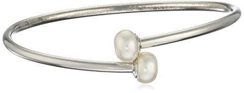 Sterling Silver 8.5-9mm Button-shape White Freshwater Cultured Pearl Flexible Bangle Bracelet, 7"
