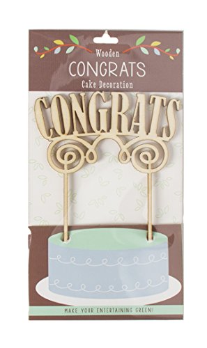 - Cake topper made from sustainable Birchwood; reads Congrats