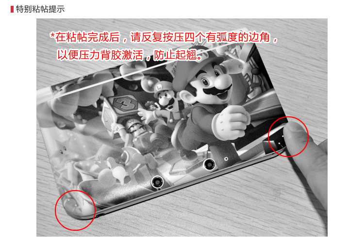 Special Note: After pasting finished, repeatedly press the four have curved corners, so that the pressure activated adhesive to prevent warped.