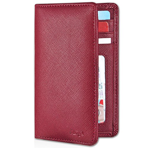 -. Feature : 5 card slots and 1 ID window.The 2 interior pockets can access more cards or cash. / Super slim bifold wallet,Elegant at your front pocket . Measures 5 inches tall x 3 inches wide / 130 mm tall x 75 mm wide / RFID Blocking,worldwide RFID/NFC protection for all frequencies and cards. / Full-grain saffiano genuine leather,Eco-friendly and vegetable turned! / Our men's wallets cover a 2-year quality guarantee when used under normal conditions.
