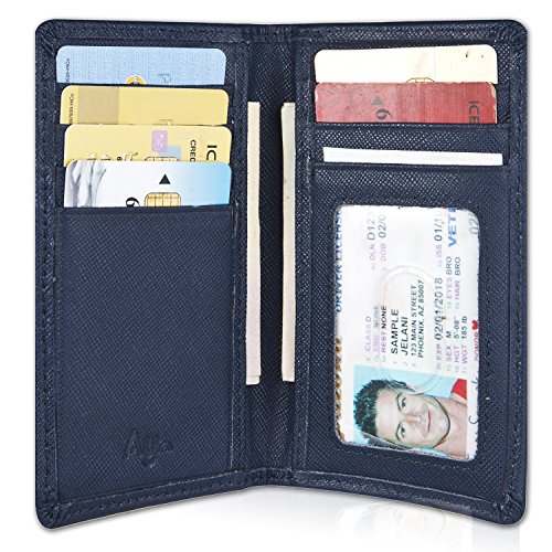 -. Title : Aurya Men's Slim Bifold Wallet ID/Credit Card Holder,Full-grain genuine leather,RFID Blocking and Front pocket wallet