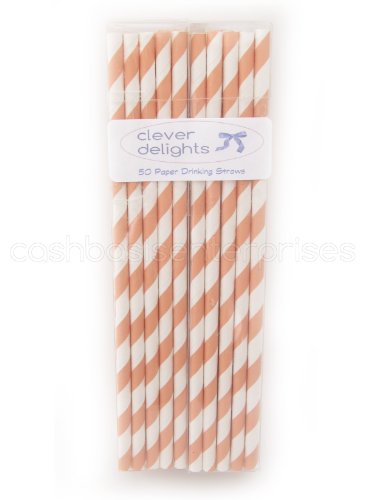 -. Feature : Peach Stripe / 7 3/4" length - Standard straw length / Eco-Friendly: Made from 100% biodegradable paper and eco-friendly food-safe ink / Perfect for weddings, parties, showers, celebrations, graduations, or any other festive occasion / Top-quality CleverDelights-brand straws -- Ships from a USA warehouse by a USA-owned company