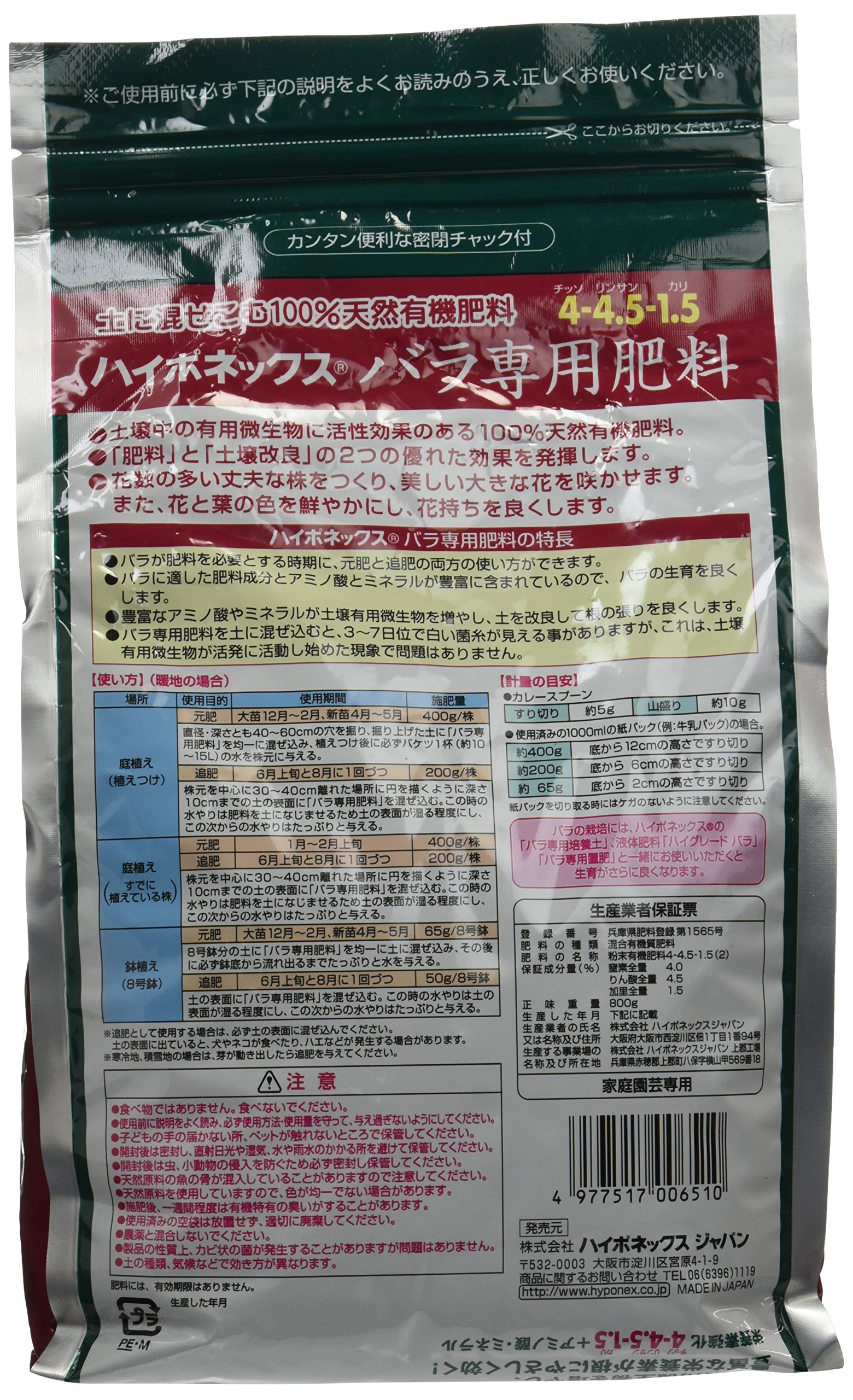 ● [Product Description] ● "Hyponex rose exclusive fertilizer 800g" is natural organic fertilizer to mix in the soil.