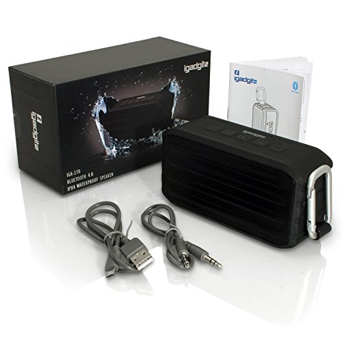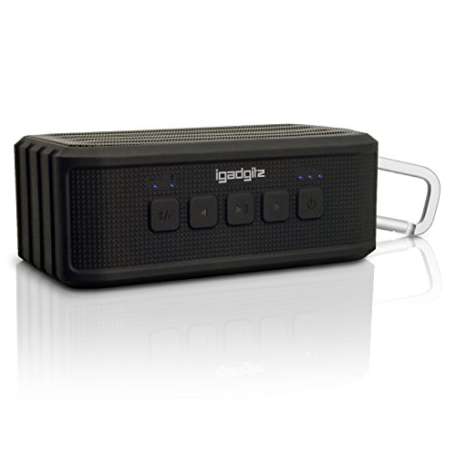 iGadgitz IGA-370 IPX4 Waterproof Portable Wireless Bluetooth Travel Speaker (Bluetooth 4.0 / 7W Power Output) with Carabineer Hanging Clip – Black