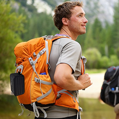 Carabineer attaches the speaker to a variety of objects, such as rucksacks and tents.