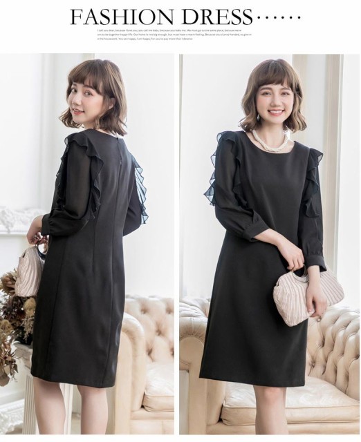 袖は透け感のある切り替えデザインで、身頃と同色のシフォン素材を使用。