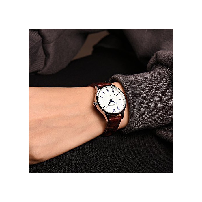 원본상품명: Rockyu ブランド 腕時計 ペアウォッチ メンズ レディス 人 時計 ビジネス サファイアガラス ブラック ブラウン 革 バンド 防水 (女, ブラウンバンド白文字盤) [行輸入品]