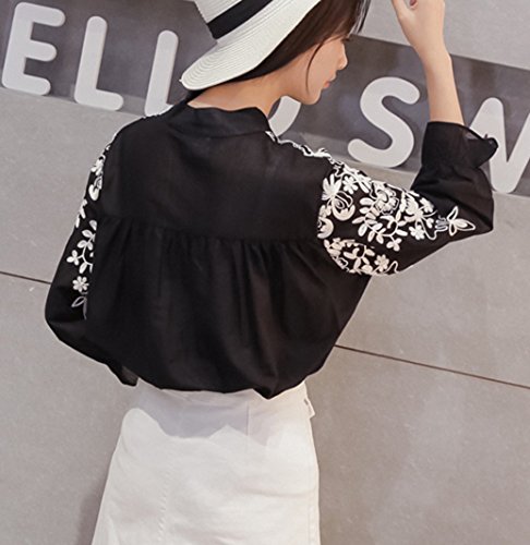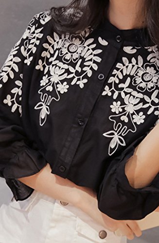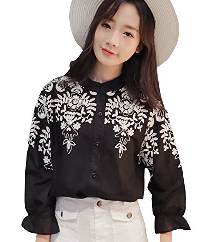 -. Title : (ライトライフ) LIGHT LIFE シャツ ブラウス 刺繍 フラワー アイビー ブラック XL