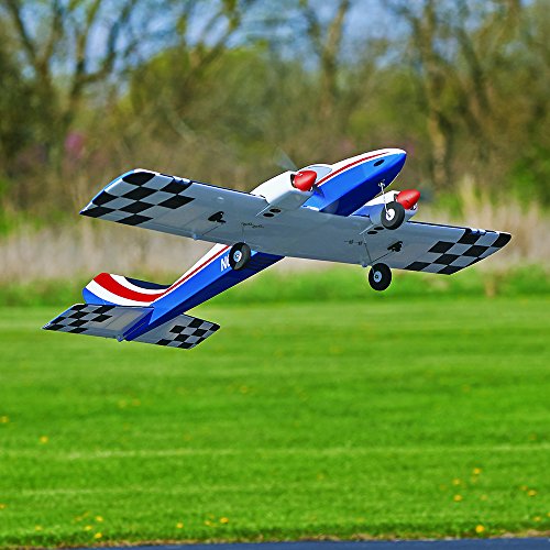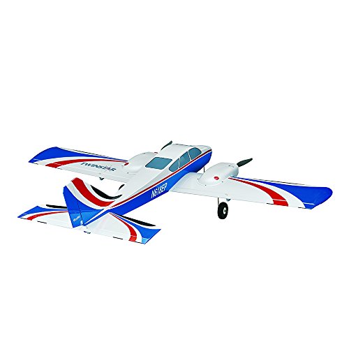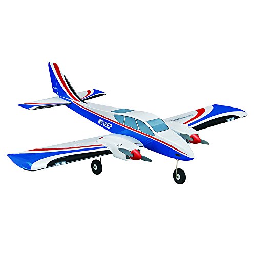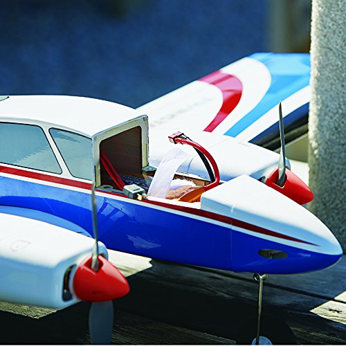 Kit Contents Built-up balsa and ply airframe High-quality MonoKote covering material Fuselage with battery hatch One-piece wing with laminated plywood joiner and pre-hinged ailerons Pre-hinged elevator and rudder Plastic motor cowls and nose cone painted to match the covering Plywood nacelles and electric motor mounts 1-3/4in plastic spinners Battery Y-harness extension Complete hardware package 24-Page photo-illustrated instruction manual