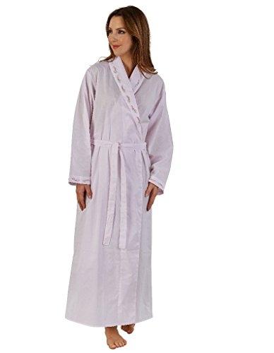 (Slenderella)/Women/Sleepwear/DIRECT FROM USA/Slenderella Pink Cotton Lavender Embroidered Panel 52" Long Sleeve Wrap