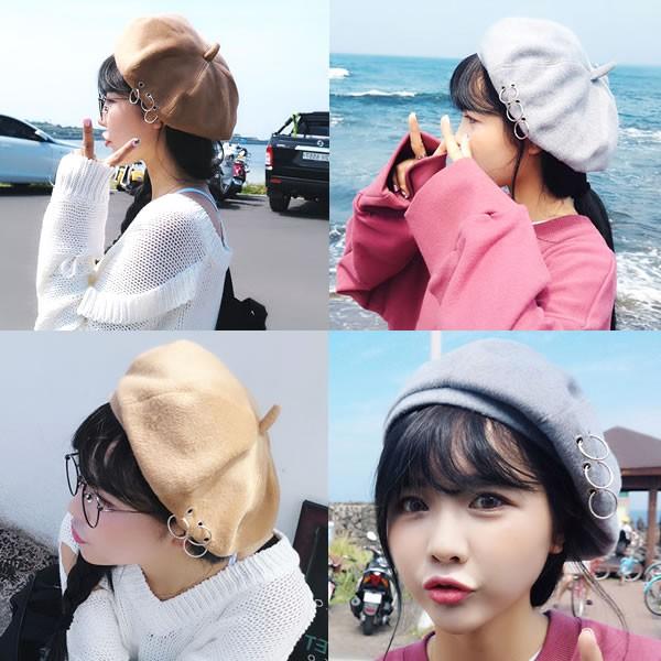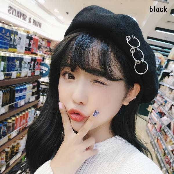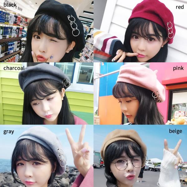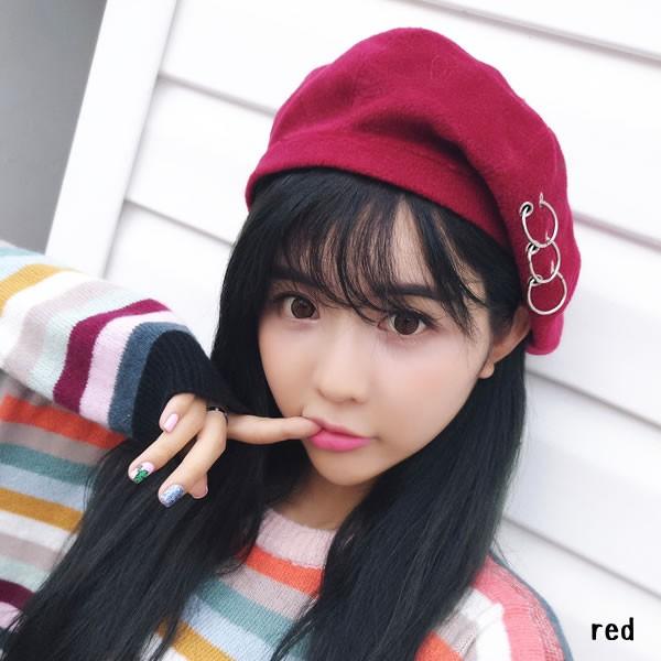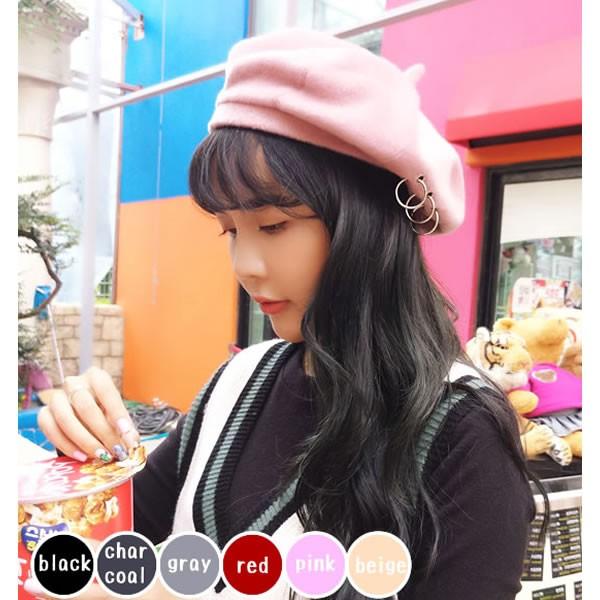 | リング付き ベレー帽 帽子 6カラー[ネコポス可] 【ベレー帽 レディース 黒 ブラック black 帽子 ボウシ ぼうし 秋 冬 トレンド ハット レッド ピンク 黒 ブラック グレー】 | |