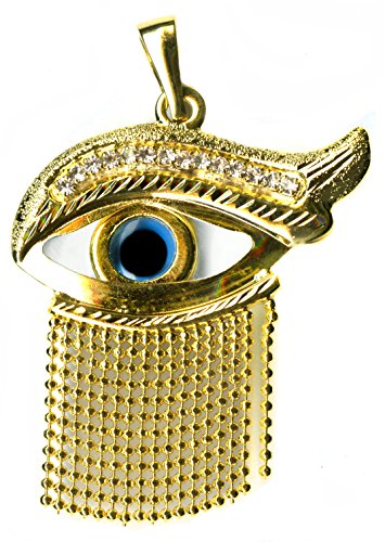 -. Title : Witch and Rich Huge 2 1/4" Egyptian Evil Eye Protection Cz Charm Gold Plated Pendant with Necklace Chain