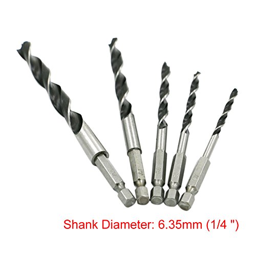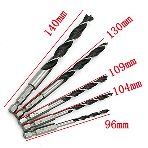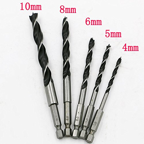 Wood Drill Bit Sets, Lily's Gift 5 Pcs Impact Tough Drill Bit High Carbon Steel Drill Bit 4mm-10mm, Quick Change, 1/4" Hex Shank, for Woodworking Wood Tools