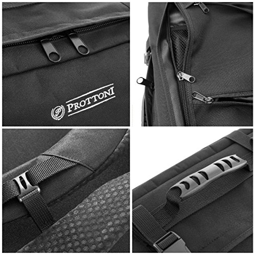 -. Brand : Prottoni -. Color : Black -. Department : mens -. EAN : 0683203897259 -. Feature : THANKSGIVING S A L E - LOWERED P.R.ICE ON ALL OUR PRODUCTS -------- QUALITY FABRIC - Our backpack is made out of heavy duty polyester with PVC lining for added waterproofing. / ANTI-THEFT HIDDEN POCKET AND MULTIPLE ZIPPERED COMPARTMENTS - This travel bag has separate, easy access laptop compartment, three front pockets and one hidden mesh pocket for vaulables. / HIGH QUALITY ZIPPERS - covered heavy duty zippers for added protection against water and theft. These features make our carry on bag perfect for your multi day trips. / 45L CAPACITY BACKPACK WITH SEPARATE ZIPPERED LAPTOP COMPARTMENT - designed as a carry on bag allowed on all major airlines. Approximate dimensions: 20*14.1*6.5 inches (L x W x H), / AIR MESH CONTOURED STRAPS AND PADDED BACK SUPPORT - Comfortable straps that you can hide and transform our backpack into a bag with two heavy duty handles. -. ProductGroup : Apparel -. ProductTypeName : LAGE -. Size : One SIze -. Title : Prottoni Carry On Backpack - Travel Cabin Weekender Bag - Seperate Laptop Sleeve -. UPC : 683203897259