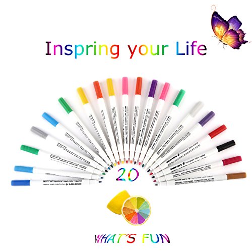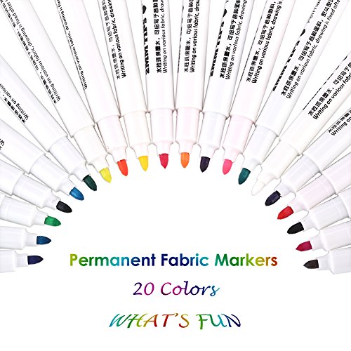 What's Fun 20 Colors Non-toxic Fabric Marker Set Permanent for DIY Creation