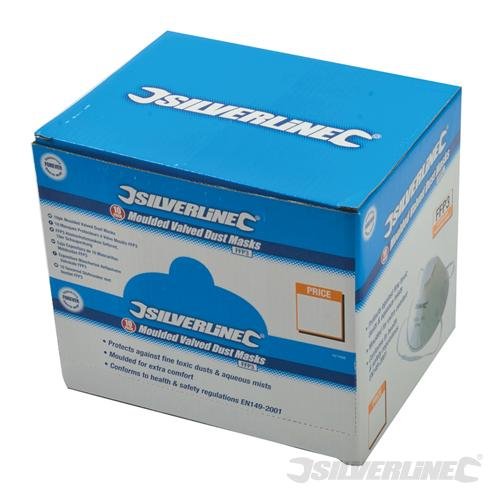-. Feature : Silverline respirator moulded valved masks / Pack of 10 FFP3 NR face masks / Up to 50 times protection against fine non-toxic dusts, fibres and aqueous mists / CE Marked / Conforms to EN149