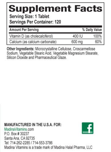 -. Binding : Health and Beauty -. Brand : Madina Halal Vitamins -. EAN : 0712096889178 -. Feature : Halal Calcium 600mg + Vitamin D3 400 IU / Calcium Helps Build Strong Bones And Teeth / 100% Natural Gelatin & Gluten Free / Boost Immune System / 3 X PACKAGE OF Two Months Supply - 120 Tablets Twice A Day -. Label : Madina Halal Vitamins -. Manufacturer : Madina Halal Vitamins -. ProductGroup : Health and Beauty -. ProductTypeName : HEALTH_PERSONAL_CARE -. Publisher : Madina Halal Vitamins -. Studio : Madina Halal Vitamins -. Title : 3 X Halal Calcium 600mg + Vitamin D3 400 IU - Made in USA -. UPC : 712096889178