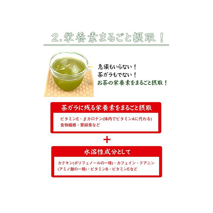 가고시마산의 센차를 강하게 하게 불을 넣고, 녹차 성분을 통째로 맛있게 섭취 할 수 있는 분말의 차로 했습니다.