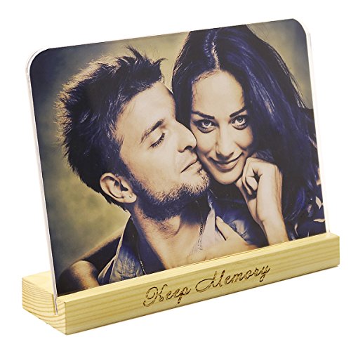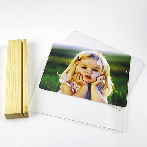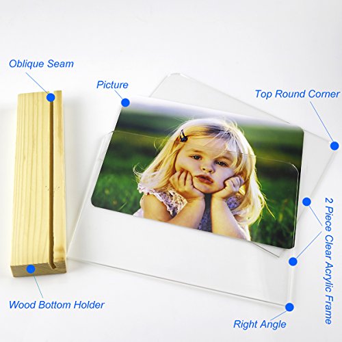 5x7 Clear Acrylic Picture Frame With Wood Holder - Round Corner Acrylic Glass Plate Picture Frame Stand on The Desk With a Wood Holder - Desk Calendar Display with Gift Box Package - SupperAcrylic