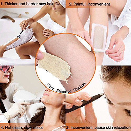 - ❤NO EPILATING STRIPS NEEDED, convenient and affordable. Low temperature, do not burn your skin.It is melts on wax lump in the middle surrounded by a magma moat. You can stop heating before completely melt, and than stir until fully melted.