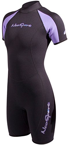 NeoSport Wetsuits Women's Premium Neoprene 3mm Shorty, Lavender Trim, 10 - Diving, Snorkeling & Wakeboarding