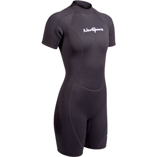 NeoSport Wetsuits Women's Premium Neoprene 3mm Shorty, Black, 8 - Diving, Snorkeling & Wakeboarding