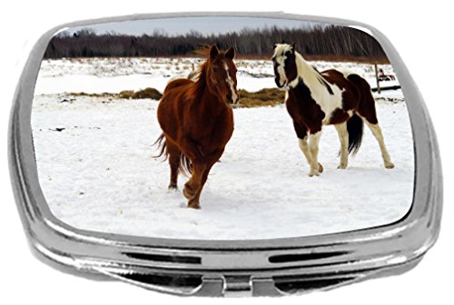 Rikki Knight Compact Mirror, Galloping Horses In Snow