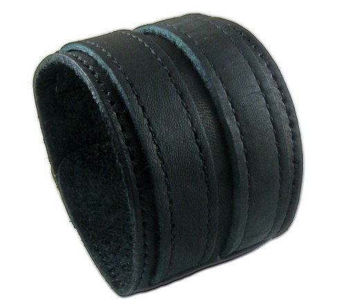 - Title : 2" Wide Classic Design Black Punk Rock Biker Leather Bracelet Bangle Bracelet Cuff Wristband for Men Women Boys Girls Unisex - Adjustable (LSB002)