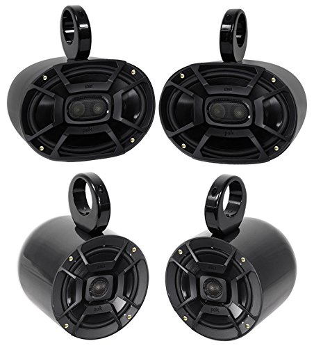 -. Feature : (2) Polk Audio DB692 6X9" 450 Watt Car Audio Marine/ATV/Motorcycle/Boat Speakers . High performance audio upgrade that delivers signature quality sound that goes beyond OEM factory systems. Marine certified with IP65 rating (water- and dirt-resistant) and tested for salt-fog, UV and humidity. Polypropylene and UV tolerant cone with waterproof inner and outer surrounds. Simple drop-in installation for any vehicle including cars, boats, ATVs-you name it. / Pair of Rockville MAC69B black aluminum can wakeboard tower enclosures. Made of high quality 6061 aircraft grade aluminum. Beautiful black powder-coat finish. 100% waterproof and fully marinized against salt and fresh water conditions. Internally wired for clean install-no exposed wires or terminals. High efficiency design features the perfect airspace for 6 x 9" speakers. Rugged universal mounting clamps made of 6061 aluminum. / (2) Polk Audio DB652 6.5" 300 Watt Car Audio Marine/ATV/Motorcycle/Boat Speakers. High performance audio upgrade that delivers signature quality sound that goes beyond OEM factory systems. Marine certified with IP65 rating (water- and dirt-resistant) and tested for salt-fog, UV and humidity. Polypropylene and UV tolerant cone with waterproof inner and outer surrounds. / Simple drop-in installation for any vehicle including cars, boats, ATVs-you name it. Zero tweeter protrusion and reduced mounting depth for a precise fit. Dynamic Balance technology offers a rich, clean, full-range sound. ¾", 20mm Tweeter ensures clear, balanced mids and highs. 100 Watts at Continuous Power; 300 Watts at Peak Power. / Pair of Rockville MAC65B black aluminum can wakeboard tower enclosures. Made of high quality 6061 aircraft grade aluminum. Beautiful black powder-coat finish. 100% waterproof and fully marinized against salt and fresh water conditions. Internally wired for clean install-no exposed wires or terminals. High efficiency design features the perfect airspace for 6.5" speakers. Rugged universal mounting clamps made of 6061 aluminum.