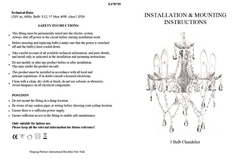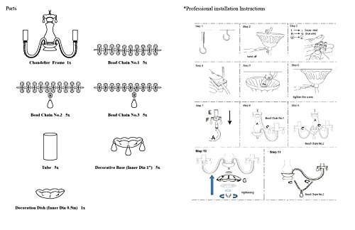 ASSEMBLY - 5 arms fold flat for easy shipping and storage and to reduce the risk of damage, simply unfold, connect a few beads, and it is ready to hang. INSTALLATION - Hardwired; professional installation recommended; UL listed, UL certified