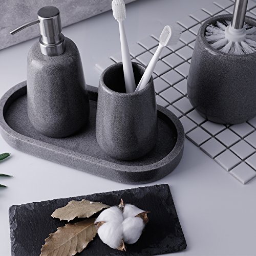 (JHB)/Bedding Bath/Bath/DIRECT FROM USA/JHB- Bathroom Counter Top Accessory Imitation Marble Textured Dark Gray Set of 5 The Best Bathr...
