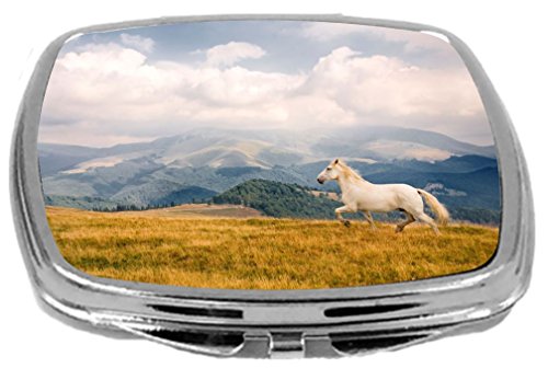 Rikki Knight Compact Mirror, White Galloping Mountain Horse