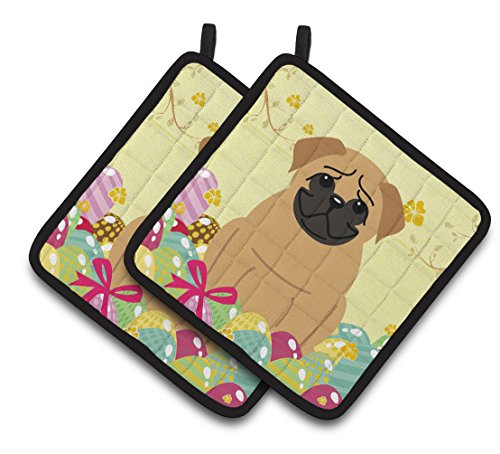 Caroline's Treasures BB6007PTHD Easter Eggs Pug Brown Pair of Pot Holders, 7.5" x 7.5", Multicolor