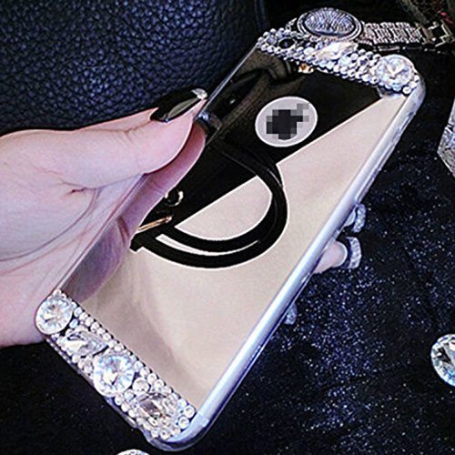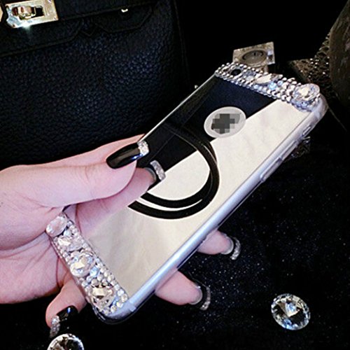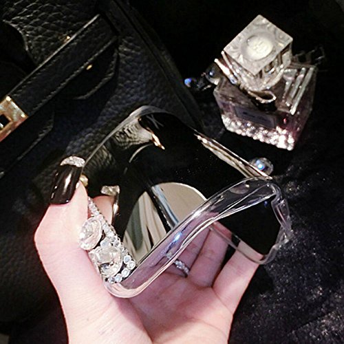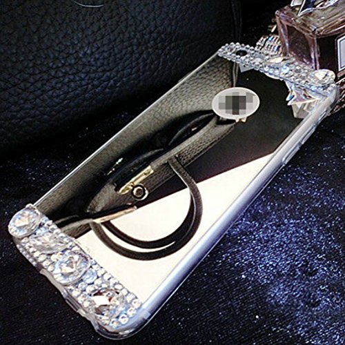 iPhone 6 Case ,LA GO GO(TM) Beauty Luxury Diamond Hybrid Glitter Bling Soft Shiny Sparkling with Glass Mirror Back Plate Cover Case for Apple iPhone 6 (4.7) - Retail Packaging (Silver)