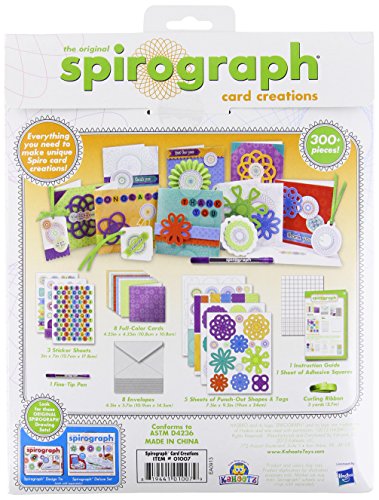 - Feature : 8 Spirograph Greeting Cards and 4 Sheets of Punch-Out Shapes & Borders / 1 Sheet of Punch-Out Gift Tags / 8 Envelopes and 3 Sticker Sheets / 1 Sheet of Adhesive Squares and 3 yards (2.7m) of Satin Ribbon / 1 Fine-line Pen and 1 Instruction Guide