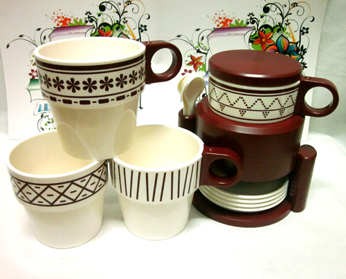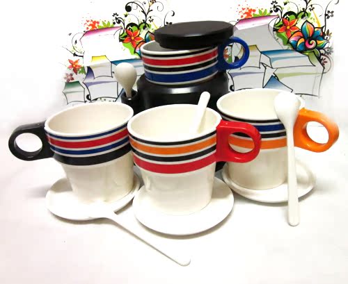 Rainbow cup II this is a plastic products of high temperature resistance? but thefusion of plastic products not fragile easy to clean? and ceramic texture and gloss?more environmentally friendly than plastic? more upscale than ceramic. Can be placed in a microwave oven? 20 degrees -120 degrees. No smell? no deformation?wear resistance? strong enough enough weight? enough bright smooth enough. Is the new choice now young family life daily tableware.