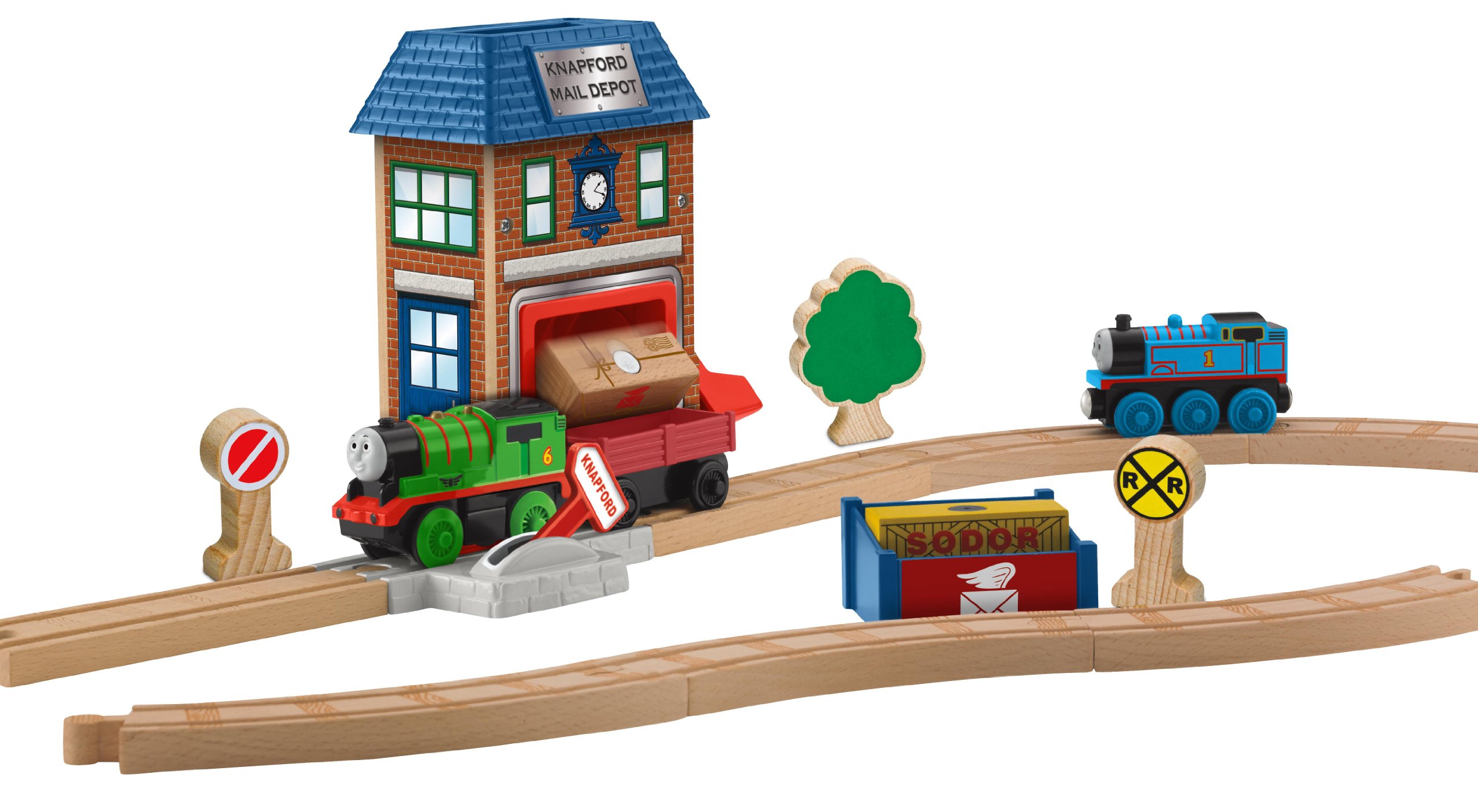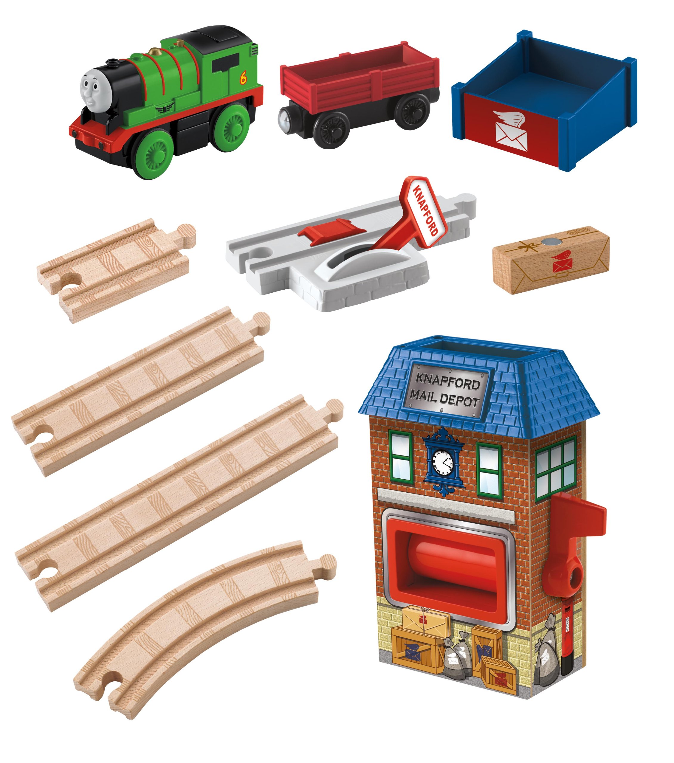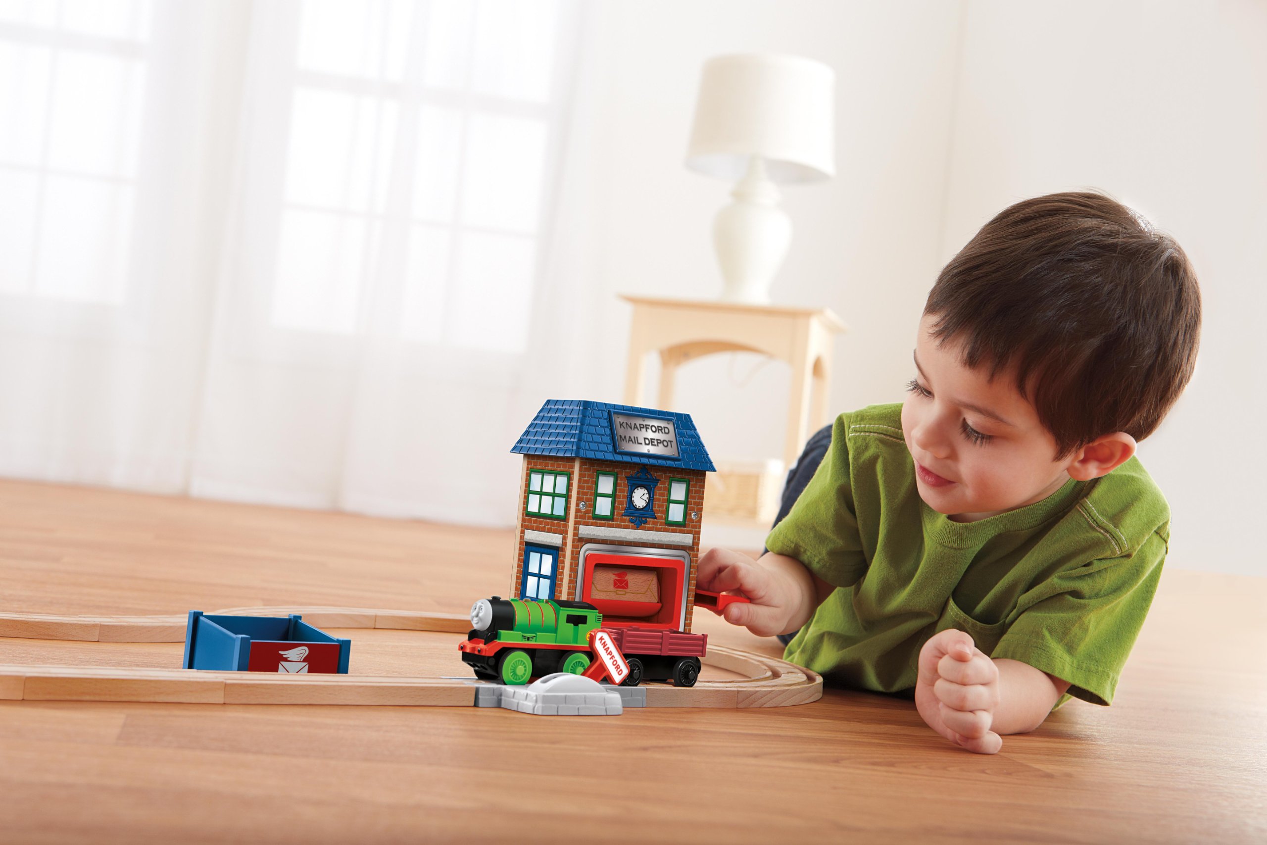 Fisher-Price Thomas the Train Wooden Railway Battery-Operated Percy and the Mail Station Set
