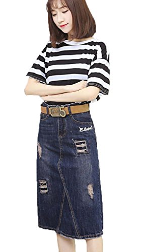 -. Title : MengFan レディース デニム ロング スカートHタイプ ハイウエスト ワンピース 尻バッグスカート ステップスカート綿 無地 通勤 人気 心地よい 生き生き カジュアル おっとり