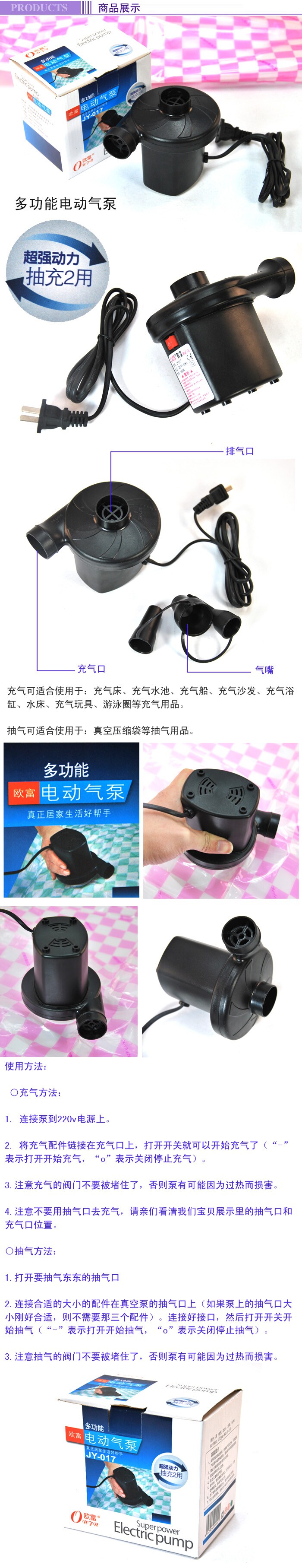 Inflation may be suitable for use in: inflatable, inflatable pool, inflatable boats, inflatable sofa, inflatable bath tub,water beds, inflatable toys, swimming ring, inflatable products.