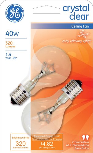 GE Lighting 74037 40-Watt 320-Lumen Decorative A15 Incandescent Light Bulb, Crystal Clear, 2-Pack