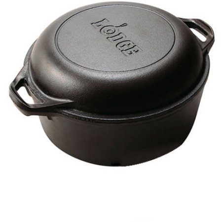 -. Feature : Cast iron double Dutch oven measures: 10-1/4" Diameter; 4" Deep. Foundry-seasoned and ready to use. / Lodge Logic Cast Iron 5-Quart Double Dutch Oven has sturdy integral ovenproof handles. Cast iron lid conveniently serves as a 10-1/4" skillet. / Cast iron Dutch oven is safe for cooking on all cooking surfaces: electric, gas and induction stovetops, oven, fire and grill. Seasoned cast iron is the original non-stick surface. / Cast iron is best for even heating and heat retention. Cast iron is economical and durable. / Cast iron is an excellent source of nutritional iron. Natural Healthy Cooking.