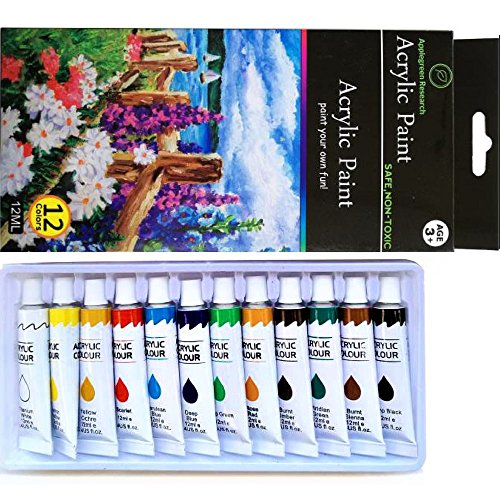 Acrylic Paint Set Artist Canvas Crafts - Non Toxic Heavy Body Quality For Rock, Wood, Ceramic, Fabric, Paper - Rich Creamy Vibrant Pigment - Beginner, Student 12 Colors: Applegreen Research