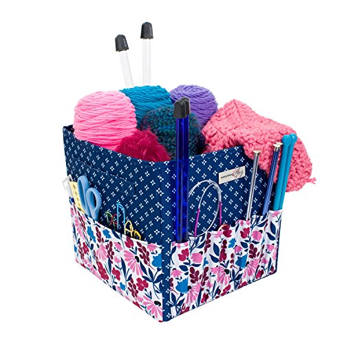 Everything Mary Square Yarn Project Caddy | Organizer for Sewing, Knitting, Crochet, and Craft Supplies | Storage with Pockets for Scissors, Yarn, Thimbles, and Knitting Needles